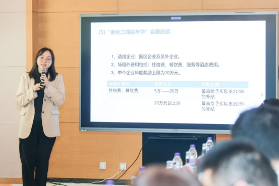 活動中,園區會展協會結合“金秋·三湖嘉年華”活動整體背景,對會展領域扶持政策進行系統性解讀。針對企業在政策理解中可能存在的模糊點,現場設置答疑環節,幫助企業準確把握政策內涵,為后續籌備、舉辦會展活動提供明確的政策指引。