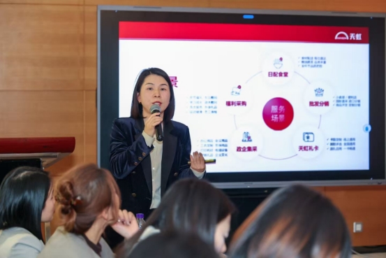 除政策解讀外,活動還設置了企業服務宣講環節,為參會企業搭建資源對接平臺。中茵皇冠假日酒店相關負責人介紹了其場地優勢、服務團隊配置及保障能力,為企業舉辦會議活動提供場地選擇參考;天虹商場相關負責人則聚焦企業年會需求,推介了相關服務及專屬優惠,助力企業降低辦會成本。