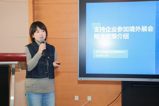 園區企服中心圍繞海外參展政策展開深度講解。詳細介紹了海外參展補貼的申報要求與操作步驟,現場解答企業在出海參展中的實際困惑,幫助企業更高效地借助政策支持拓展國際市場。