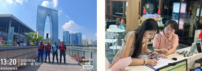 雙節假期,金雞湖景區游客中心和碼頭增加了“小水滴志愿者”,為市民游客提供引導和幫助。景區管理中心聯合屬地企業、景區執法部門、應急救援等22家單位,強化值班值守制度,及時處理各類涉旅問題,不斷提升游客體驗感、滿意度。環湖各碼頭、文化場所、游客中心、驛站、摩天輪等相關載體工作人員堅守一線窗口,以微笑服務迎接每一位市民游客。藍天救援隊每日水上巡防、各屬地一線安保人員齊齊在崗,為市民游客中心營造了安心、舒心的假日環境。