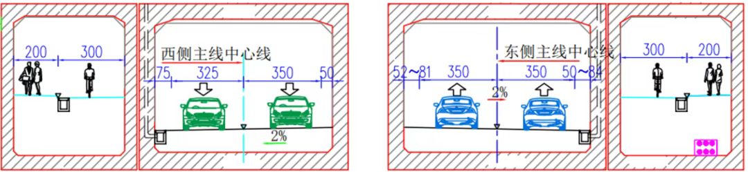 (雙馬街下穿鐵路通道斷面示意圖)