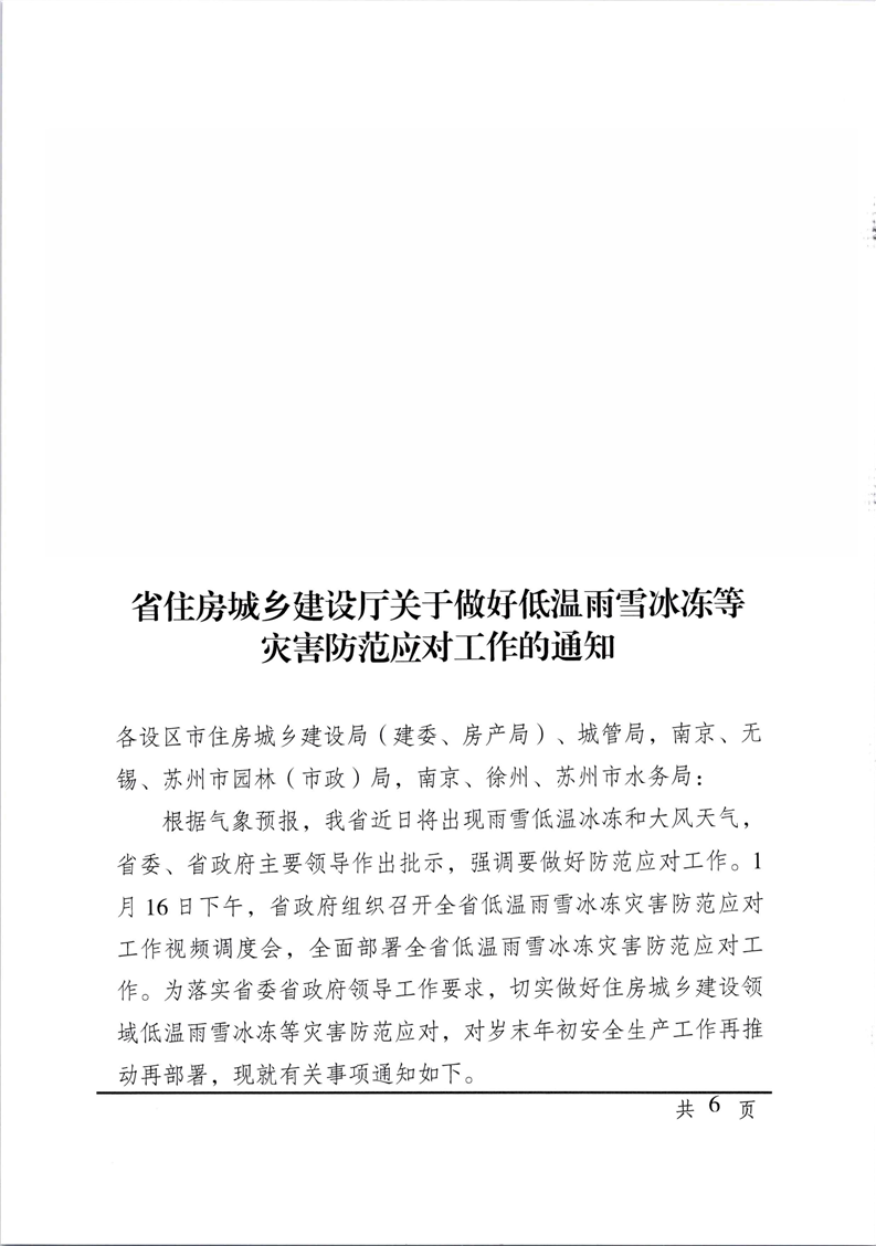 省住房城鄉(xiāng)建設(shè)廳關(guān)于做好低溫雨雪冰凍等災(zāi)害防范應(yīng)對(duì)工作的通知