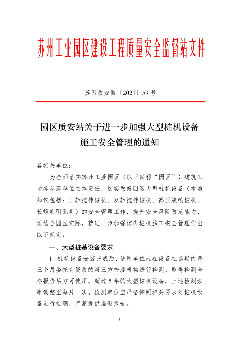 園區質安站關于進一步加強大型樁機設備施工安全管理的通知