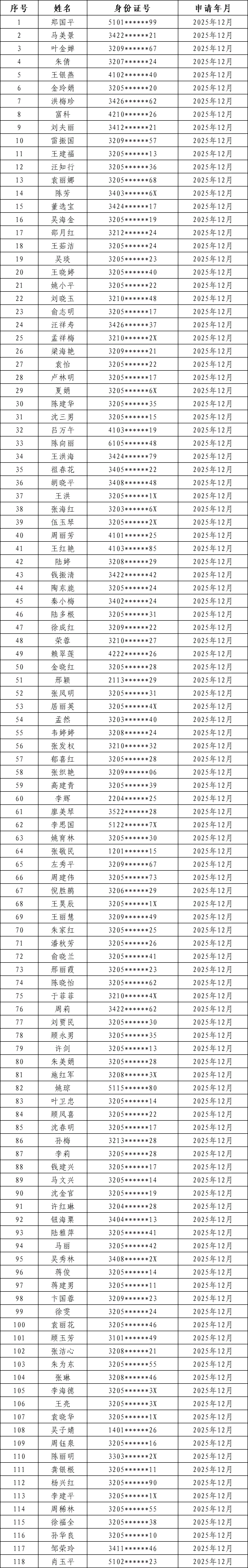 根據《江蘇省就業補助資金管理辦法》精神及業務有關規定,現將2025年12月園區靈活就業社保補貼新增人員相關信息進行公示,接受社會監督。公示期限為7天,公示自發布之日起。