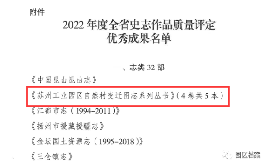 近日,由江蘇省地方志辦公室組織的2022年度全省史志作品質量評定結果揭曉,2部作品獲評江蘇省史志作品優(yōu)秀成果,其中《中國名鎮(zhèn)志· 唯亭街道志》在24部名鎮(zhèn)名村志中名列第一,《蘇州工業(yè)園區(qū)自然村變遷圖志系列叢書》在32部志類作品中名列第二。
