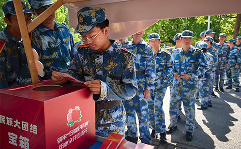 活動以“擺攤設點”的形式在校園內展開,設置了普法宣傳區、互動答題區等區域。工作人員精心布置宣傳展架,展示了中華人民共和國國家安全法、宗教事務條例、反電信網絡詐騙法、禁毒法及相關毒品種類等與學生生活息息相關的法律法規知識。互動答題區的“答題有獎”環節吸引了大批學生積極參與,學生們熱情高漲,有序排隊答題。活動中,教官帶頭參與互動,不少答錯的學生主動重新排隊挑戰,展現出濃厚的學習熱情。