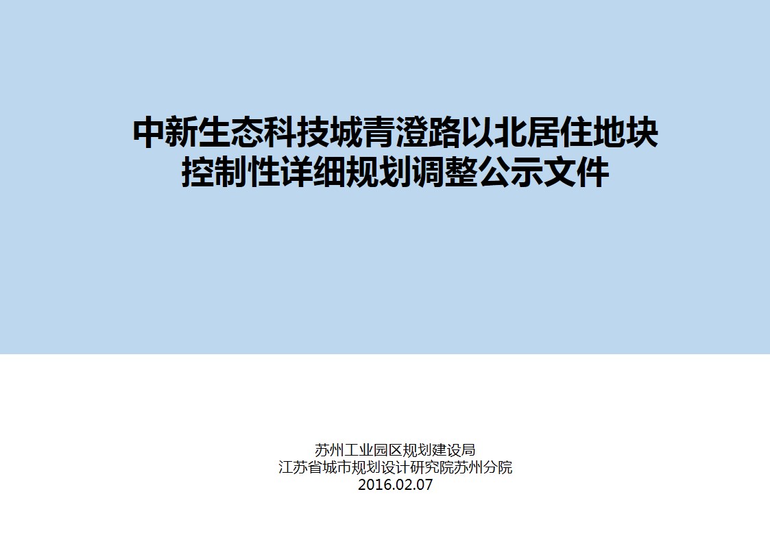 中新生態科技城青澄路以北居住地塊控制性詳細規劃調整公示文件
