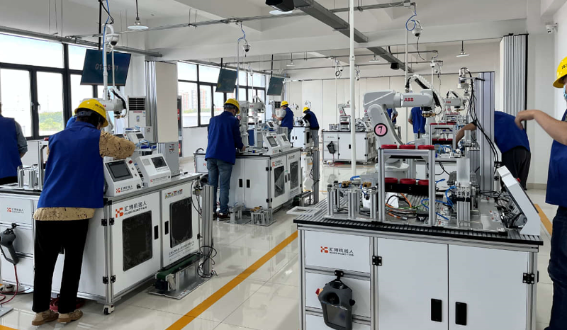匯博ロボットグループは教育アップグレードを継続的に支援しており、390萬元の資金を投入し、203.16萬元相當(dāng)の産業(yè)用ロボット実習(xí)設(shè)備を寄贈(zèng)し、蘇州百年職業(yè)學(xué)院と「工業(yè)インターネット産業(yè)學(xué)院」を共同建設(shè)し、実習(xí)生産基地を精心に整備した。
