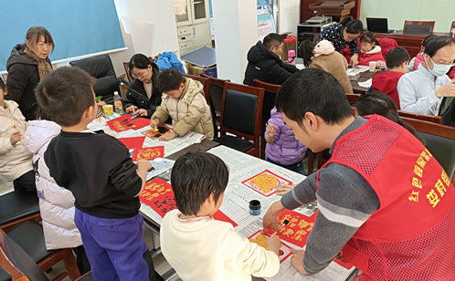 “拓印起源于先秦時期,是中國古代最早出現的一種特殊的印刷技術,具有深厚的歷史底蘊和獨特的藝術魅力……”“紅管”志愿者首先為大家簡單介紹了拓印的歷史起源、文化內涵和制作工藝,通過生動的講解和示范,在場居民無不表現出濃厚的興趣。隨后,在專業老師的指導下,大家開始動手體驗。首先將自己喜歡的模板置于紅色宣紙上,再小心翼翼地用海綿刷蘸取墨汁,均勻且輕柔地按壓拓印,使圖案或文字清晰地印在紙上,待將模板揭下,一張張墨香四溢、滿載著新年祝愿的拓印作品就誕生了。此次非遺拓印活動不僅讓居民近距離感受到傳統藝術文化的魅力,更促進了鄰里之間的情感交流。