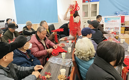 剪窗花這一古老而傳統的民間手工技藝,亦是春節不可或缺的風景線。東港家怡社區活動室里,居民們圍坐一堂,彩紙翻飛,剪刀舞動,一派其樂融融的景象。大家在志愿者老師的悉心指導下,翻轉對折、描邊裁剪,不一會兒,一個個寓意吉祥的窗花作品便躍然紙上,有的如國色天香的牡丹,有的似翩翩起舞的蝴蝶,還有的則像展翅高飛的鳥兒,形態各異,美不勝收,每一幅都寄托著辭舊迎新、接福納祥的新年祝福。居民們一邊展示自己的窗花作品,一邊分享著過年的習俗和家中的趣事,現場歡聲笑語不斷。有的居民還帶來了自己親手制作的年貨,與大家分享品嘗,傳遞著節日的喜悅與溫暖。