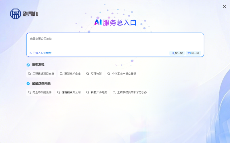 為提升企業(yè)使用體驗感,“園區(qū)法人服務(wù)總?cè)肟凇狈e極擁抱AI+浪潮,深度鏈接DeepSeek大模型,全國首創(chuàng)“AI服務(wù)總?cè)肟凇?,集結(jié)各部門精心打造的AI“人才助手”“高企助手”“企業(yè)開辦助手”等智能體矩陣,每個領(lǐng)域都有高級AI專家出謀劃策;打通了智能客服與AI搜索能力,打造了“搜”“問”“辦”全鏈深度融合的智能服務(wù)新模式,無需記住專業(yè)術(shù)語,企業(yè)只需像朋友對話一樣描述需求,平臺就能迅速解析場景,精準推薦服務(wù)方案。