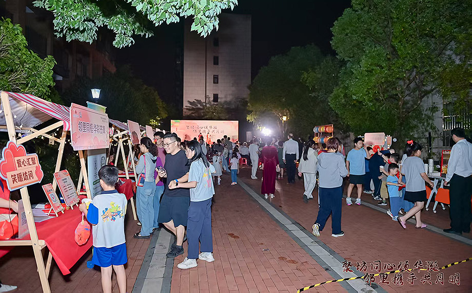 中秋節的喜慶溫馨,不僅停留在景區、湖畔,還涌向了街頭巷尾。在斜塘街道車坊社區“聚坊同心頌華誕鄰里攜手共月明”演出現場,歡聲笑語此起彼伏,通過居民們的傾情演繹,一幅充滿溫情與活力的社區畫卷徐徐展開。