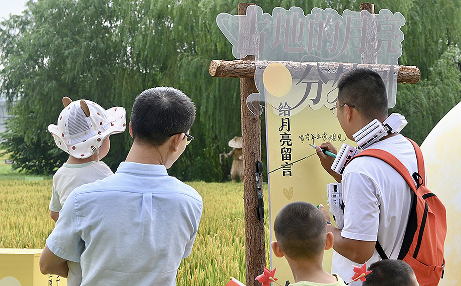 而在承載了六千年文明的草鞋山考古遺址公園,一場跨越時空的對話正在上演。許多親子家庭沉浸其中,或在“古地圓月”裝置前合影留念,或在心愿墻上寫下對家人的祝福,并收集草鞋山專屬中秋透卡。“草鞋山是很有歷史文化底蘊的地方。中秋節來這里,更有一種文化傳承的儀式感,是最好的家庭教育。”一位帶著孩子的父親感慨道。