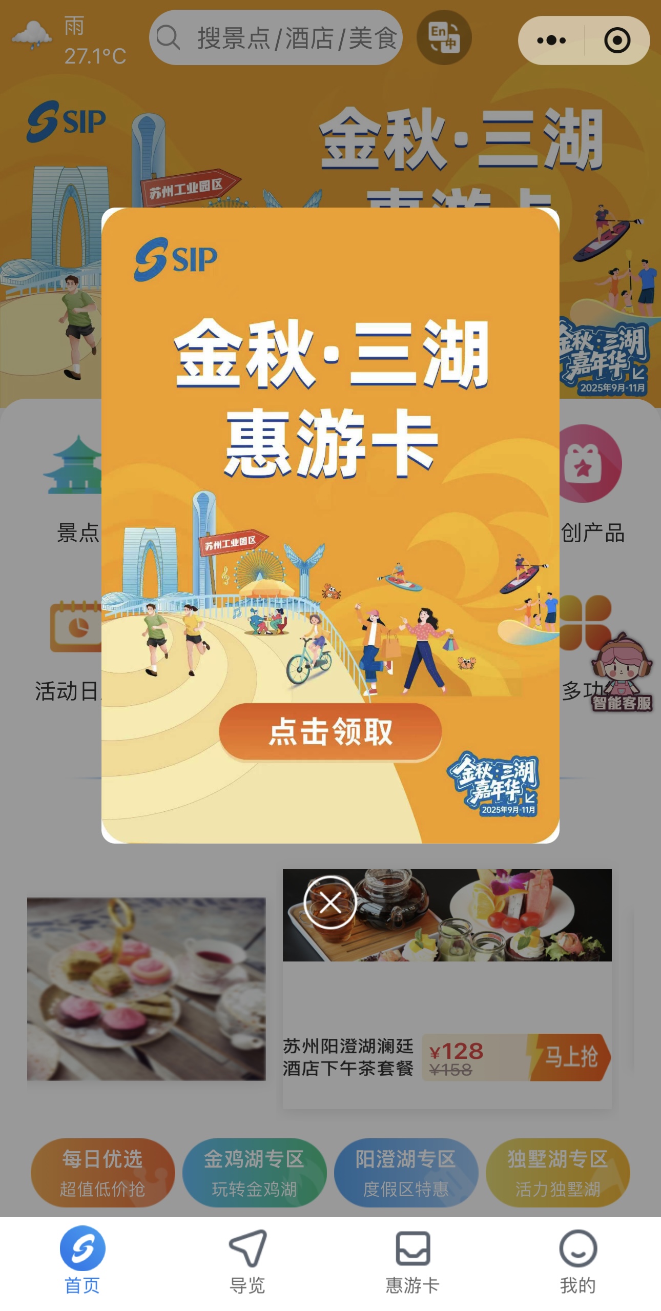 為讓市民游客“消費更優惠、參與更輕松”,活動期間推出一系列針對性惠民舉措,覆蓋酒店住宿、餐飲美食、休閑零售、文旅體驗等多個領域。“金秋?三湖惠游卡”重磅升級發布,市民游客通過“惠游園區”平臺免費領取后,可于小程序右下角“我的”—“我的卡包”中,快速查看。
