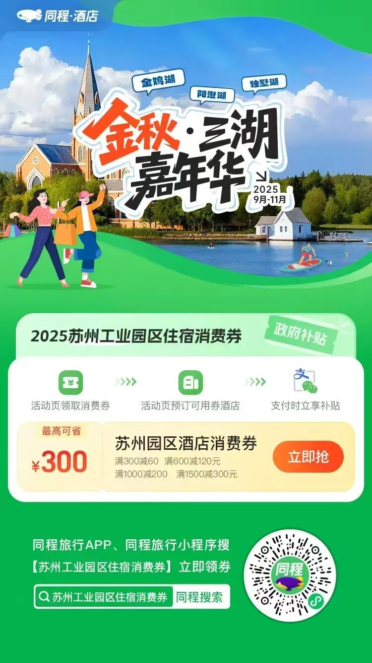 三大湖區、百項活動、千家商戶、十萬好禮、億元讓利——在蘇州工業園區,一場精心策劃的金秋商旅文盛宴正等你入席。