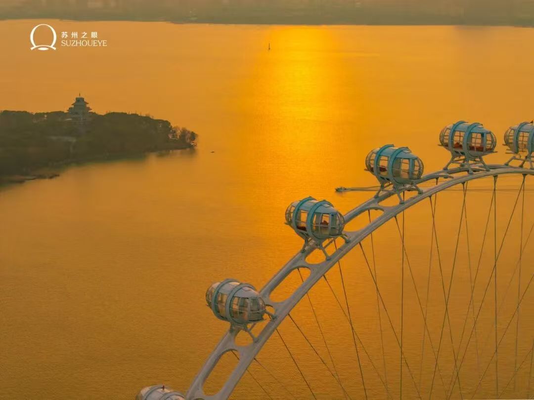 “蘇州之眼”摩天輪在這個(gè)假期成功“出圈”,化身為“云朵治愈季”的夢(mèng)幻舞臺(tái)。新推出的“盲盒艙”“寵物友好艙”及“下午茶艙”備受游客歡迎,人們期待在緩緩升空的過(guò)程中,將金雞湖的落日與璀璨夜景盡收眼底。
