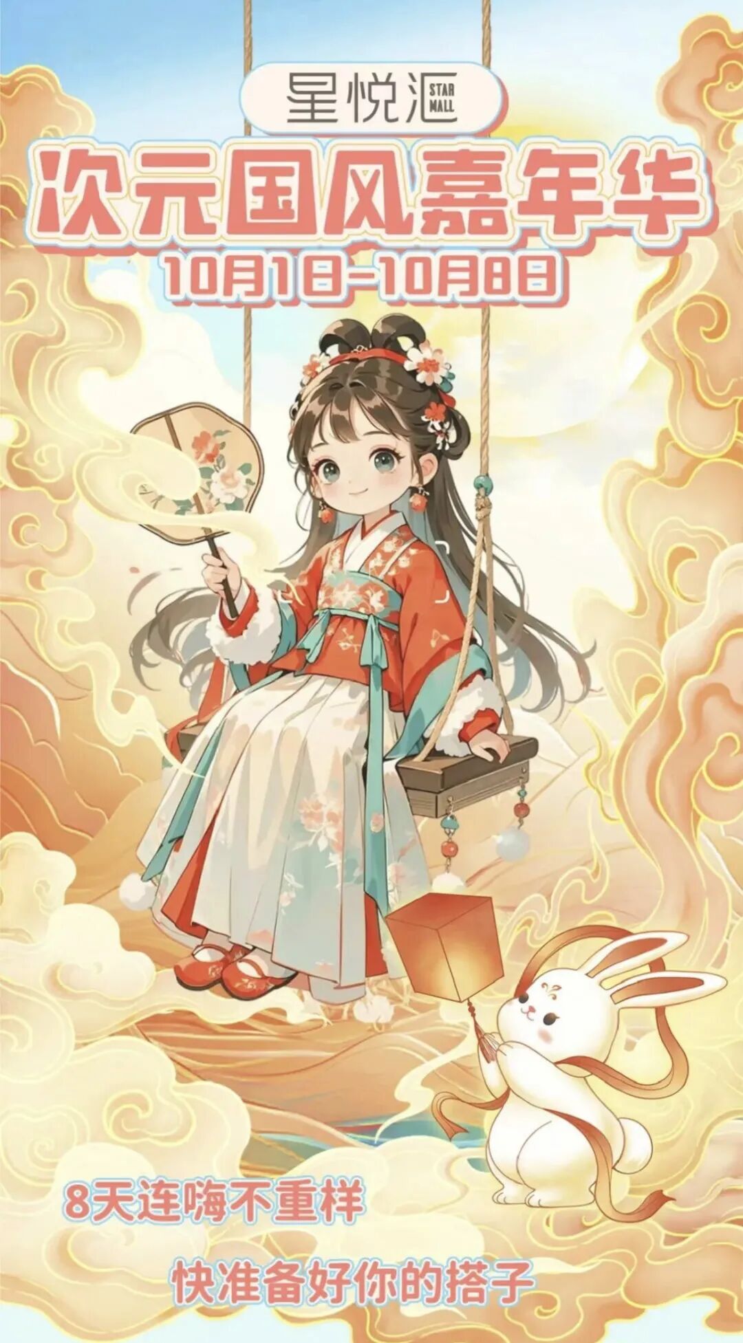 非遺手作體驗(yàn)讓參與者感受傳統(tǒng)技藝魅力,6場(chǎng)漢服主題巡游再現(xiàn)中式美學(xué)韻味,24場(chǎng)定點(diǎn)舞臺(tái)演繹輪番上演,30+國(guó)風(fēng)市集攤位琳瑯滿目,市民可賞燈、趕集、聽(tīng)曲、游園,重啟中式浪漫。二次元圣地星悅匯則推出“次元國(guó)風(fēng)嘉年華”,8天活動(dòng)不重樣,見(jiàn)證“次元壁破裂”。國(guó)風(fēng)音樂(lè)舞蹈演出、西浦動(dòng)漫社巡游、lolita茶會(huì)時(shí)光、棉花娃娃主題日滿足Z世代們不同興趣需求,百萬(wàn)粉絲博主將帶來(lái)Kpop舞蹈秀,邀市民一同“撒野”。