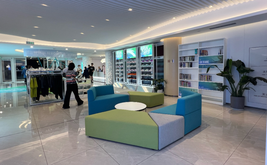 走進(jìn)跑者驛站,明朗的色彩搭配洋溢著城市與運(yùn)動(dòng)的活力。衣物寄存、淋浴服務(wù)、裝備租賃、能量補(bǔ)給和社群活動(dòng)五大功能區(qū)域有序規(guī)劃,不僅解決跑者“負(fù)重跑步”“運(yùn)動(dòng)后煥新”的痛點(diǎn),還通過跑鞋等裝備租賃,提升“說跑就跑”的自由體驗(yàn)。