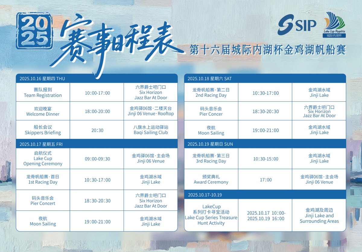 秋風(fēng)送爽,彩帆再啟。2025第十六屆城際內(nèi)湖杯金雞湖帆船賽將于10月16日至19日在蘇州金雞湖正式啟幕。作為蘇州工業(yè)園區(qū)三大品牌體育賽事之一,該賽事已成功舉辦十五屆,本屆賽事以“同帆共進(jìn),聚勢(shì)無雙”為主題,聚焦“國際競(jìng)技之力、水岸文旅之韻、全民樂活之美”三大維度,通過多國選手同臺(tái)競(jìng)技、專業(yè)與大眾相結(jié)合的賽制設(shè)置,以及體育、文化、旅游元素的深度融合,打造獨(dú)具江南文化特色的城市體育名片。群帆競(jìng)渡,共逐金雞湖本屆賽事設(shè)置專業(yè)龍骨帆船賽與大眾趣味系列賽兩大板塊。專業(yè)龍骨帆船賽涵蓋J80、DC20及FT7.5三大船型;大眾賽事則以槳板與皮劃艇為主,零基礎(chǔ)選手亦可輕松參與,體驗(yàn)水上運(yùn)動(dòng)的樂趣。賽程設(shè)置豐富多... [詳細(xì)]
