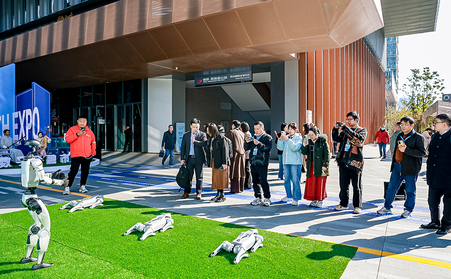 步入市集,婉轉柔美的蘇州評彈如清泉般流淌,瞬間將人帶入江南雅境。非遺展區(qū)內(nèi),蘇扇、緙絲、蘇繡等傳統(tǒng)工藝品在陽光下流轉生輝,市民紛紛駐足細賞、咨詢挑選。而在數(shù)字潮玩區(qū),科技感與未來感撲面而來,智能機器人揮舞雙臂與觀眾互動,憨態(tài)可掬的機器狗隨著指令完成轉圈、跳躍等高難度動作,盡顯科技魅力,引得圍觀群眾陣陣喝彩。