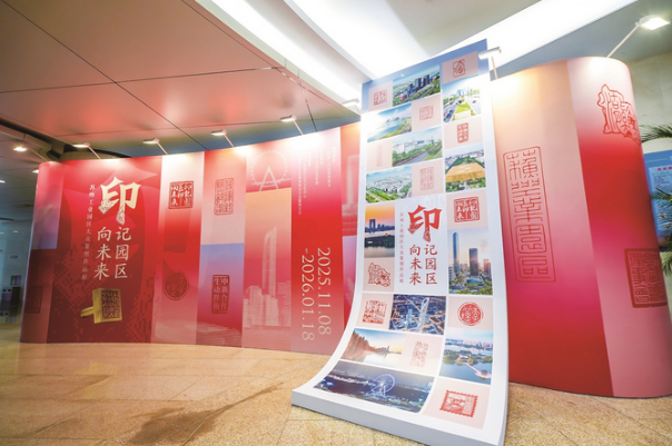 步入“印記園區(qū)印向未來——蘇州工業(yè)園區(qū)大眾篆刻作品展”展廳,一方方印章靜列于展柜,講述著這片土地自1994年開發(fā)建設(shè)以來的波瀾壯闊。