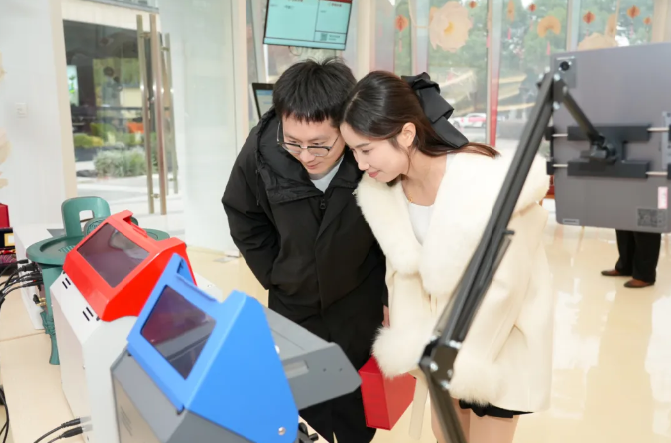 現(xiàn)場(chǎng)洋溢著幸福與儀式感,下午1點(diǎn)活動(dòng)開(kāi)始后,前10對(duì)完成婚姻登記的新人如約獲贈(zèng)數(shù)字篆刻專(zhuān)屬印章印章由“印記園區(qū)印向未來(lái)”蘇州工業(yè)園區(qū)大眾篆刻作品展特別定制,將新人姓名以傳統(tǒng)篆刻藝術(shù)數(shù)字化呈現(xiàn),可永久保存、隨時(shí)調(diào)用。一枚印章,既是愛(ài)情的信物,也是新年最獨(dú)特的紀(jì)念。