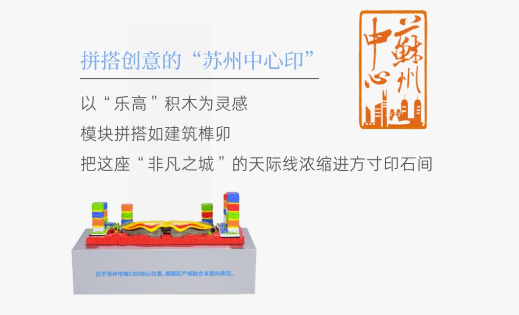 “篆刻是在方寸之間去創造一個世界,建筑則是在天地之間去雕刻一枚印章。”啟迪設計集團建筑師張筠之帶來了用樂高積木搭建的《蘇州中心》印章。這件充滿童真與趣味的作品,用五彩的積木堆疊出園區的活力、青春與探索精神。在她看來,園區本身就是一幅宏偉的時代畫卷,每一座錯落起伏的建筑,都是深深印刻在這片土地上的印章,鐫刻著時代的價值觀與審美,成為留給后人的文化記憶。