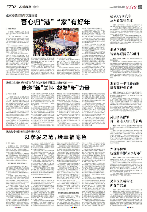 “小哥”們留下來過年,園區就努力把年味送到他們身邊。這樣的場景,眼下正在園區各處上演。婁葑街道舉辦新業態新就業群體友好主題活動,發布“‘葑’享便利暖‘新’”地圖。斜塘街道聯合園區交警大隊斜塘中隊開展交通安全專項培訓,為騎手們送上節日“安全錦囊”。唯亭街道開設“幸福市集”,邀請專業醫護人員到場開展中醫推拿、口腔檢查等健康服務。勝浦街道聯合共建單位、愛心商戶,以“幸福四季”迎新春服務市集和春節站點走訪為載體,為新就業群體發放新春禮盒。