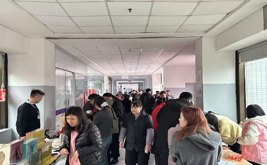 活動現場暖意融融、熱鬧非凡,處處洋溢著喜慶祥和的新春氛圍。上午10點半,市集剛一開市,就吸引了大批職工前來打卡選購,歡聲笑語此起彼伏,各個攤位前都排起了長長的隊伍,熱鬧勁兒十足。非遺民俗體驗區成為現場的“網紅打卡點”,糖畫、拓印、寫春聯等攤位前圍滿了好奇又熱情的職工。糖畫藝人手持融化的糖漿,手腕輕轉,靈動可愛的生肖圖案便躍然眼前,金黃透亮的糖畫散發著甜香,引得職工們頻頻駐足;拓印攤位前,職工們親手拿起工具拓印,在動手體驗中感受傳統文化的魅力;書法家揮毫潑墨、筆走龍蛇,職工們爭相定制專屬春聯,一副副筆力遒勁、寓意美好的春聯和福字,承載著新春的祝福。另一邊的商品采購區同樣火爆,鴨貨、水果、茶葉、商超百貨,各色商品琳瑯滿目,不少職工手里提著滿滿當當的購物袋,臉上掛著滿足的笑容,步履輕快地穿梭在各個攤位之間,收獲著新春的驚喜與暖意。