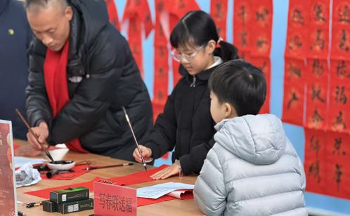 活動室內,長桌鋪開,墨香陣陣。社區邀請的書法老師和幾位擅長書法的老黨員揮毫潑墨,為居民現場書寫春聯和“福”字。一副副寓意美好的對聯,一張張筆力遒勁的“?!弊郑诠P下流淌而出。居民們圍在一旁,一邊欣賞,一邊挑選著自己心儀的內容?!袄蠋煟垘臀覍戇@幅‘平安二字值千金’!”王阿姨拿著墨跡未干的對聯,笑容滿面。紅紙黑字,傳遞的是最傳統也最真摯的新春祝愿。