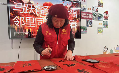 此外,社區還開展新春寫“福”字活動,邀請書法愛好者現場揮毫潑墨,為居民送上專屬的新年祝福。活動現場,紅紙鋪展,墨香浮動。書法愛好者們凝神靜氣,一停一頓、一起一落間,一個個飽滿靈動的“福”字便躍然紙上,或端莊敦厚,或清秀飄逸,各具風骨,皆蘊吉祥。居民們有序排隊領取,將這份手寫的溫度迎回家中。接過“福”字的人們笑意盈盈,紛紛表示,手寫的福字不僅聞得到墨香,更品得出傳統文化的厚重溫潤。
