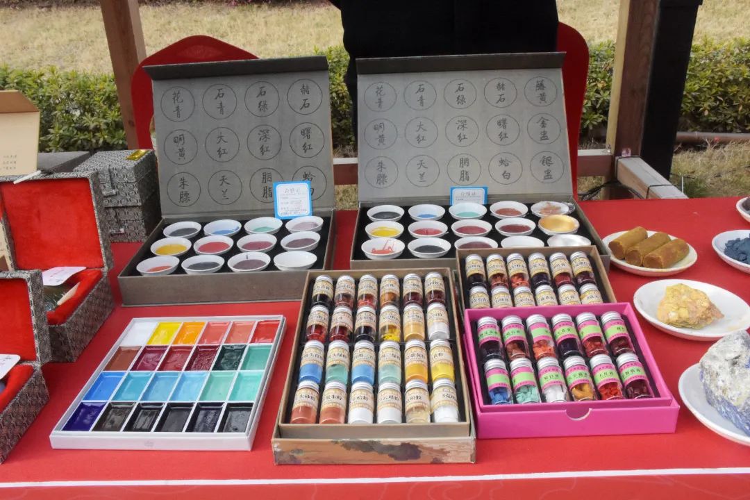 此次大會,張佰林不僅帶來了各色原材料,還帶來了多款針對不同用戶需求的12色國畫顏料,以及印泥、礦石標本等品類的相關產品。現場,他還積極與大家分享國畫顏料制作的工藝流程和產品特色,并邀請有興趣的市民游客去工廠體驗。