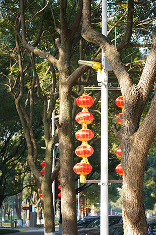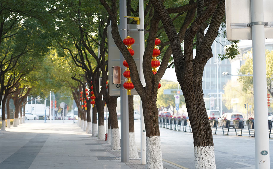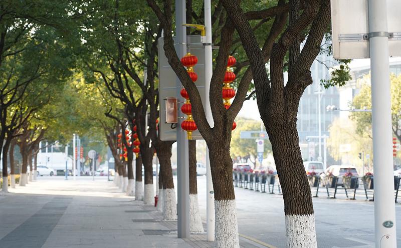 在蘇州大道、圓融環路等主干道旁,一盞盞大紅燈籠高高掛起,沐浴著冬日的暖陽,在微風中輕輕搖曳,仿佛在向人們訴說著新年的故事。