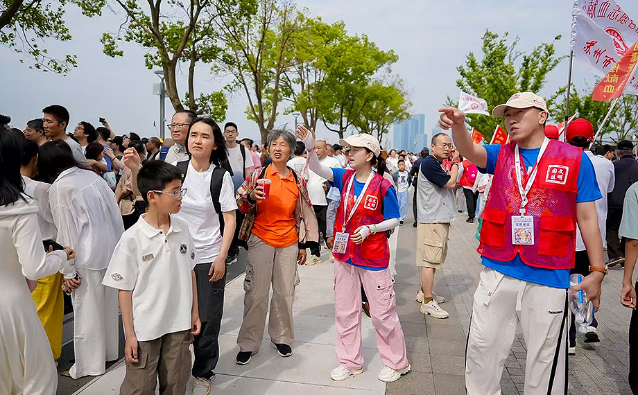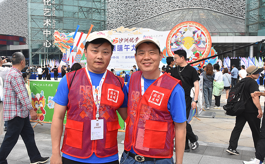 “體驗(yàn)區(qū)請(qǐng)往這邊走!”在非遺科技龍舟體驗(yàn)區(qū),網(wǎng)格長(zhǎng)楊章繹正熱情地為游客指引方向。“前期我們進(jìn)行了踩點(diǎn)、人員安排等,今天我六點(diǎn)半就到現(xiàn)場(chǎng)待命了。這次我主要負(fù)責(zé)非遺科技體驗(yàn)區(qū)游客問(wèn)詢、觀賽引導(dǎo)及秩序維護(hù)等工作。”楊章繹是來(lái)自園區(qū)企業(yè)江南嘉捷的員工,也是一名資深志愿者。自金雞湖端午龍舟賽首次招募志愿者開(kāi)始,他就一直報(bào)名參與賽事的志愿服務(wù)工作。“能夠持續(xù)為園區(qū)大型賽事貢獻(xiàn)自己的力量,我覺(jué)得很快樂(lè)也很自豪。我們要通過(guò)完善的服務(wù),展現(xiàn)蘇州和園區(qū)的城市溫度。”