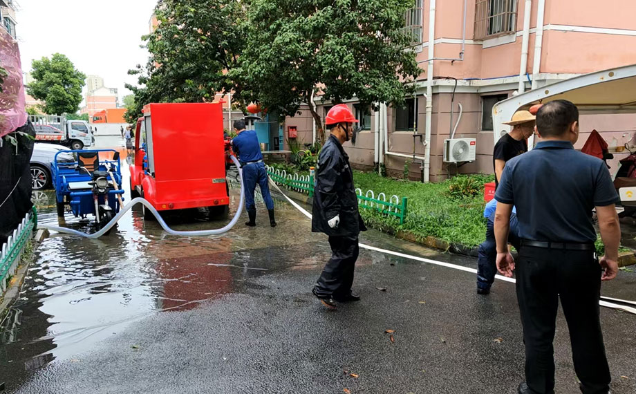 在金雞湖街道貴都社區,社區工作人員針對二期車庫這一重點,聯合物業提前部署,精準施策,在車庫入口處,配備大功率抽水泵,以便及時排除可能的積水威脅,為業主的財產安全撐起“保護傘”。其他各社區也整合物業、志愿者等多方力量,聚焦地下車庫、雨污水井、排水管網等關鍵部位,加強排查、疏通和清理,確保雨情第一時間響應、險情第一時間處置。