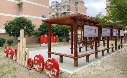 為填補(bǔ)社區(qū)法治文化陣地空白,讓居民在家門口便捷學(xué)法,淞漁社區(qū)打造的法治文化新空間“法治文化長廊”完成建設(shè)并正式投入使用。長廊內(nèi)懸掛“維護(hù)法律權(quán)威,共建法治社區(qū)”“學(xué)法人人受益,守法人人和諧”等鮮明標(biāo)語,打造抬頭可見的法治文化環(huán)境,并特別增設(shè)法治主題微景觀區(qū),巧妙融入“法”字、窗花、法律名稱等元素,形成兼具教育性與觀賞性的小型景觀帶,讓法治長廊成為提升社區(qū)法治氛圍的重要陣地。為回應(yīng)居民休憩議事需求、挖掘集體記憶潛力,淞源社區(qū)積極探索援法議事新實(shí)踐,依托承載居民情感的百年香樟,打造了集休憩、議事、普法功能于一體的“香樟樹下議事園”。在保留原有自然風(fēng)貌基礎(chǔ)上,園內(nèi)增設(shè)桌椅、遮陽棚、信箱等便民設(shè)施,將自發(fā)聚集點(diǎn)升級為功能完善的公共空間。同時(shí),社區(qū)創(chuàng)新設(shè)置援法議事機(jī)制,使該園成為社區(qū)協(xié)商、依法解決身邊事的實(shí)踐平臺(tái),讓這處充滿溫度的議事空間成為法治精神融入基層治理的新載體。