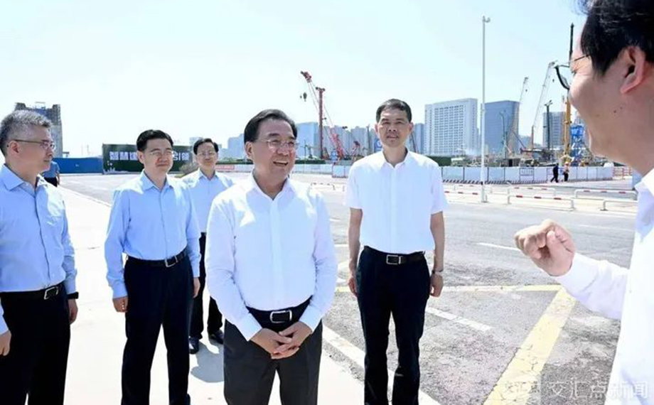蘇州北站綜合樞紐集高速鐵路、城際鐵路、市域鐵路及城市軌道交通于一體,現場塔吊林立、蔚為壯觀。信長星來到新建站房工程現場和綜合樞紐項目部,聽取蘇州市鐵路網和蘇州北站綜合樞紐規劃建設情況介紹。他指出,綜合交通樞紐事關城市發展未來、事關國家重大戰略實施。要立足百年大計,高起點規劃、高水平設計、高質量建設、高標準管理,全力打造經得起歷史檢驗的精品工程。要堅持站城融合,銜接好車站功能和城市功能、核心區域和周邊區域,統籌好站場空間、配套設施、科創載體建設,提高人流物流聚集和疏散效率,積極培育各類業態,助力提升城市發展能級、釋放輻射帶動效應,更好融入和服務長三角一體化發展和長江經濟帶發展。連日來持續高溫,廣大建設者奮戰在一線,非常辛苦。要落細落實防暑降溫措施,營造良好工作和生活環境,齊心協力推進工程建設。