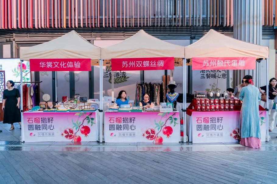 圍繞各民族不同的美食和文化,此次風情市集設置了三大特色展區:美食區匯聚了蘇式糕點、潮汕菜、新疆干果等各地美食,讓市民在舌尖上感受民族風情;服飾區展示了旗袍、漢服、絲綢、水鄉服等傳統服飾,并設有專業講解和互動體驗;手工藝品區展出了蛋雕、手工編、緙絲等精美工藝品,搭配漆扇制作等手工體驗,深受市民喜愛。