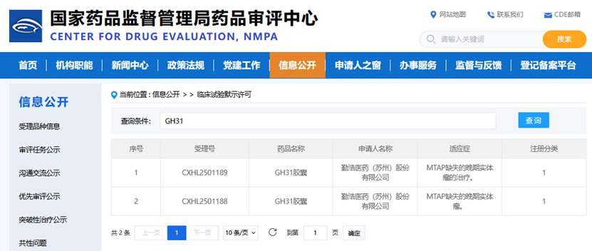 勤浩醫藥(蘇州)股份有限公司(以下簡稱“勤浩醫藥”)申報的1類新藥MAT2A抑制劑GH31臨床試驗申請順利通過中國國家藥監局審評,此前其已獲美國食品藥品監督管理局批準。