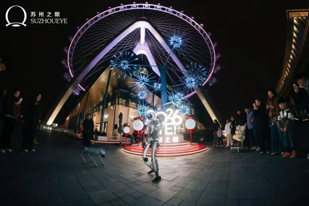 作為城市地標的“蘇州之眼”摩天輪借助8大主題裝置,成為迎接新年最具儀式感的空中觀禮臺。在128米的高空,市民游客以獨一無二的云端視角,見證新年的到來,現(xiàn)場還有機器人舞蹈等潮流表演,氛圍熱鬧精彩。
