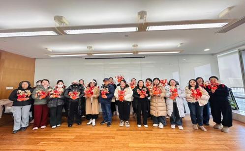桌上整齊擺放著橘紅飽滿的柿子造型底座、艷紅欲滴的仿真冬青果、翠綠雅致的仿真尤加利葉、印著吉祥紋樣的心愿簽等材料,每一份物料都透著濃濃的年味兒。志愿者老師耐心講解制作要點,從花材的色彩搭配、高低錯落的插制技巧,到冬青果與尤加利葉的疏密組合,再到心愿簽的巧妙點綴、紅繩福牌的系掛方法,每一步都細(xì)致演示,手把手指導(dǎo)大家操作。居民與樓宇白領(lǐng)圍坐成圈,小心翼翼地將各種花材插入底座,勾勒出錯落有致的層次感,互相分享創(chuàng)作靈感,歡聲笑語間,一個個飽滿靈動的柿子桶漸次成型。最后,大家再系上紅繩、掛上福牌,原本簡約的福桶瞬間被年味填滿,滿滿承載著大家對馬年順?biāo)彀部档恼鎿雌谂巍?/p>