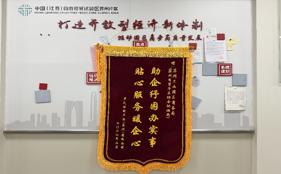 春潮涌動啟新程,服務暖心促發(fā)展。近日,世界500強企業(yè)、全球診斷領域龍頭羅氏集團在華全資子公司羅氏診斷產(chǎn)品(蘇州)有限公司相關負責人專程來到蘇州工業(yè)園區(qū)商務局,送上一面致謝錦旗,以此表達對園區(qū)長期以來在企業(yè)發(fā)展道路上給予的全方位鼓勵與支持的誠摯謝意,尤其對園區(qū)依托自貿(mào)區(qū)平臺,在通關便利化推進、生物醫(yī)藥全鏈開放創(chuàng)新等領域推出的一系列創(chuàng)新政策,以及政策落地過程中為企業(yè)紓困解難、保駕護航的有力行動給予高度認可和點贊。