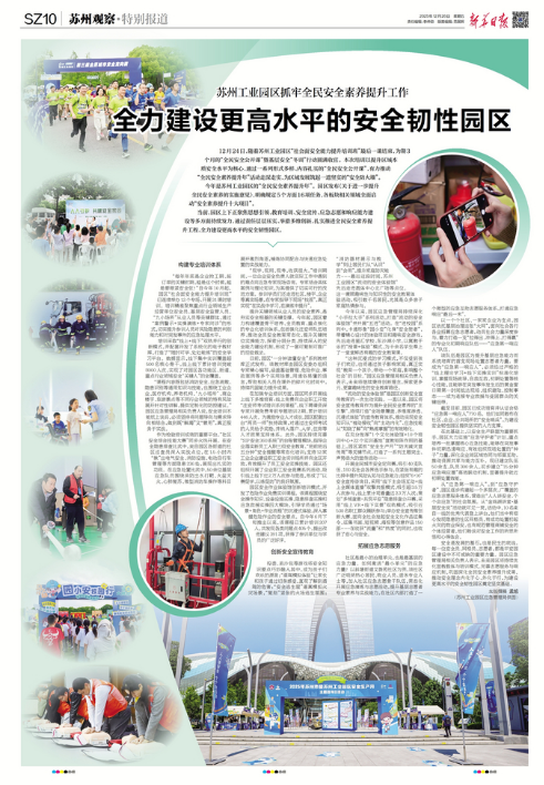 今年是蘇州工業(yè)園區(qū)的“全民安全素養(yǎng)提升年”。園區(qū)發(fā)布《關(guān)于進一步提升全民安全素養(yǎng)的實施意見》,明確規(guī)定5個方面16項任務(wù),各板塊相關(guān)領(lǐng)域全面啟動“安全素養(yǎng)提升十大項目”。