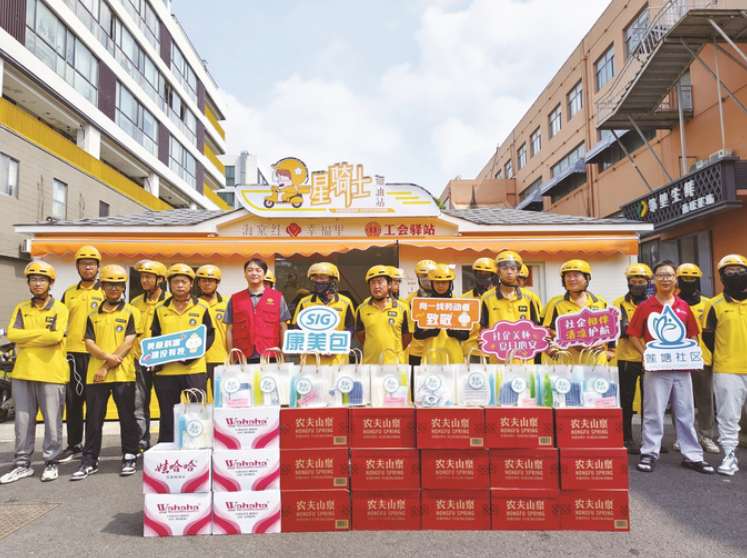 金雞湖街道領匯社區黨支部發榜,希望在領匯商務廣場上外賣員經常聚集停車的點位附近,增設一處“暖新驛站”。博世汽車部件(蘇州)有限公司黨委揭榜,提供了電冰箱、落地式風扇、微波爐等硬件,小哥們飯冷了可加熱、渴了可飲水、熱了可乘涼,廣場停車也更有序。