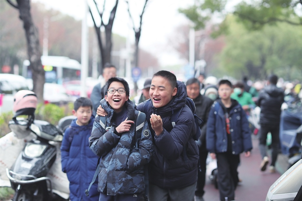 昨天,蘇州工業園區金雞湖學校,孩子們和同學告別后歡快地邁入假期。王亭川攝