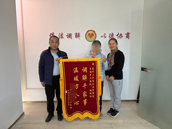 “感謝街道和社區的調解員,解決了我們家的煩心事”。近日,轄區的劉阿姨拿著錦旗來到婁葑司法所,向專職調解員表達謝意,這也是今年以來調解室收到的第二面錦旗。今年年初,劉阿姨發現家中衛生間天花板持續滲水,物業排查系樓上鄰居新裝衛浴防水層不達標所致,經多次溝通未果后,劉阿姨攜帶滲水視頻資料到街道綜治中心求助。調解員了解案情后立即啟動"多方聯調機制",聯合社區矛調工作站上門實地查看,通過邀請物業現場勘驗、社區法律顧問釋法明確漏水責任方,經過多次當面溝通,最終形成“物業先行修復+責任方分期償付”方案。近年來,婁葑街道著力構建多元解紛體系和聯合調解機制,整合街道人民來訪中心、公共法律服務中心、蘇州工業園區人民法院融合法庭、社區矛調工作站等平臺的同時,也組建了網格藍調解工作室、熊躍個人調解工作室、商圈調委會等一批特色化調解機構。在糾紛化解過程中,引入法律顧問專業支撐、行業力量共同參與,確保簡易糾紛就地化解,復雜糾紛聯合調解。