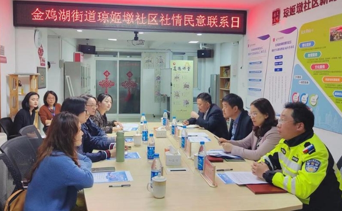 在金雞湖街道瓊姬墩社區,沈磊一行與居民代表就公共交通、社區配套等事項進行了逐一討論。對于居民代表反映的環洲路幼兒園門口家長占道停車影響交通的情況,沈磊及與會領導表示,街道要結合轄區校園實際,因地制宜設置“護學崗”,為學生安全保駕護航。同時,交警部門也要加大校園周邊,特別是上學、放學時段的道路巡邏管控力度,引導家長文明停車,保障停車秩序,緩解通行壓力。