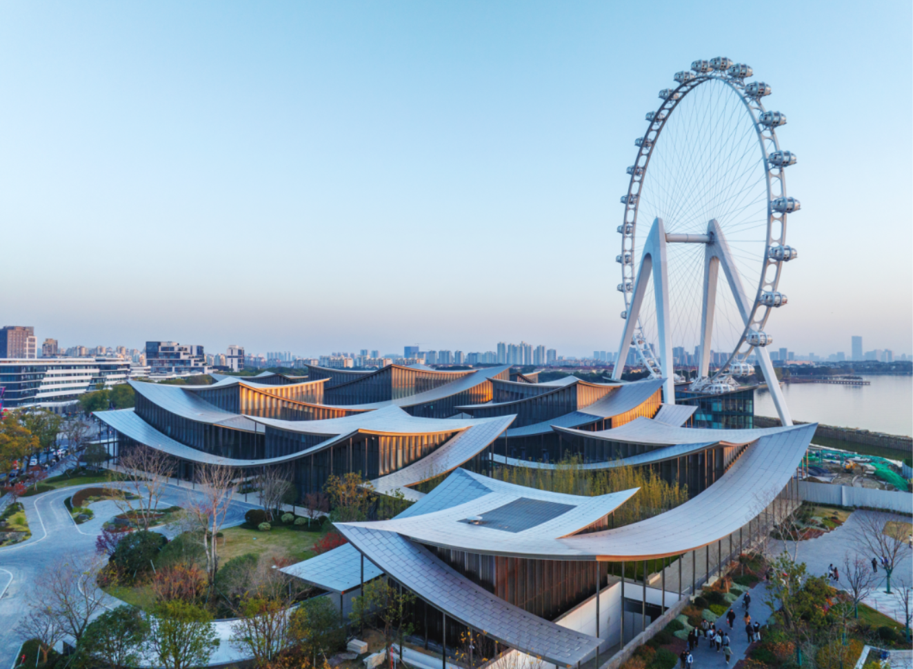 視線轉向金雞湖,2025年3月,亞洲最大水上摩天輪“蘇州之眼”正式亮相,120米高空之上,湖光城景盡收眼底,這里也成為無數市民游客定格美好瞬間的浪漫地標。不遠處,蘇州當代美術館建設加速,9個獨棟單體組成的藝術空間呈現“一步一景”的設計構思,近期場館已開放試運營,未來將以多元展覽讓藝術成為市民觸手可及的日常風景。
