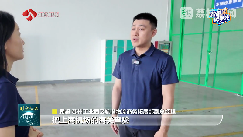荔枝新聞中心記者尹美又說:“蘇州沒有機場,貨物運輸卻更方便了,怎么實現的呢?一起到全國首個跨省市、跨關區航空前置貨站來看看。”