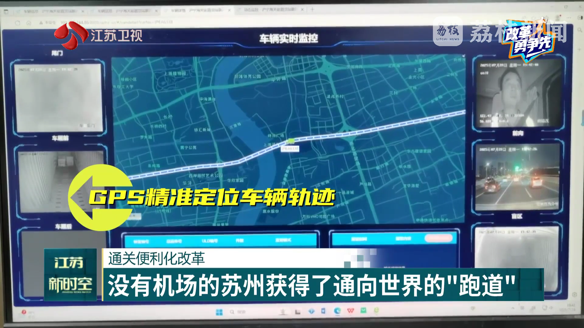 這個被企業稱為“家門口機場”的貨站,背后藏著一套打破行政壁壘的改革創新機制。記者在現場看到,上海機場的安檢人員被“前移”至貨站負責安檢工作,蘇州、上海兩地海關創新“安全智能鎖”,海關與民航共建聯網系統,在每輛運輸車安裝5個攝像頭實時監控貨物狀態,通過GPS定位系統精準追蹤軌跡,實現對貨物運輸全流程的雙重監管。通過這些方式,貨站實現了安全的閉環。